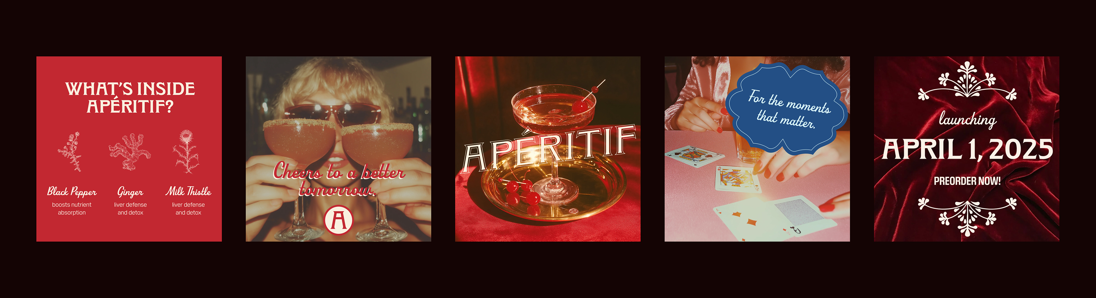 We leaned into old-world indulgence with a modern edge—art deco elegance, botanical apothecary cues, and a cocktail-culture attitude, anchored in a bold red and cream palette with refined icons, patterns, and illustrative details that feel collectible, giftable, natural, and a little bit iconic.